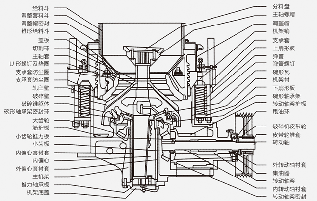 圓錐破碎機適用于冶金、建筑、筑路、化學及硅酸鹽行業中原料的破碎,根據破碎的原理,圓錐破碎機廣泛運用于大的礦山、冶煉、建材、公路、鐵路、水利工業等眾多部門。圓錐破碎機破碎比大、效率高、能耗低,產品粒度均勻,適合中碎和細碎各種礦石,巖石。